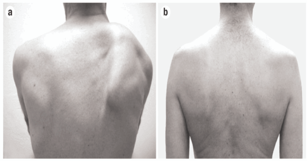 頚椎症性筋萎縮症の方の背中 正常な方の背中