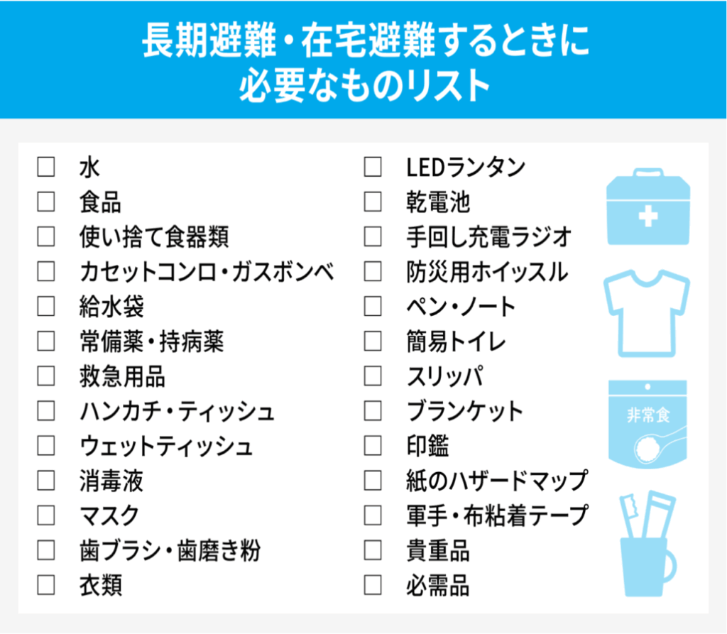 ハザードマップを確認したり家族と緊急時の連絡先を確認する等